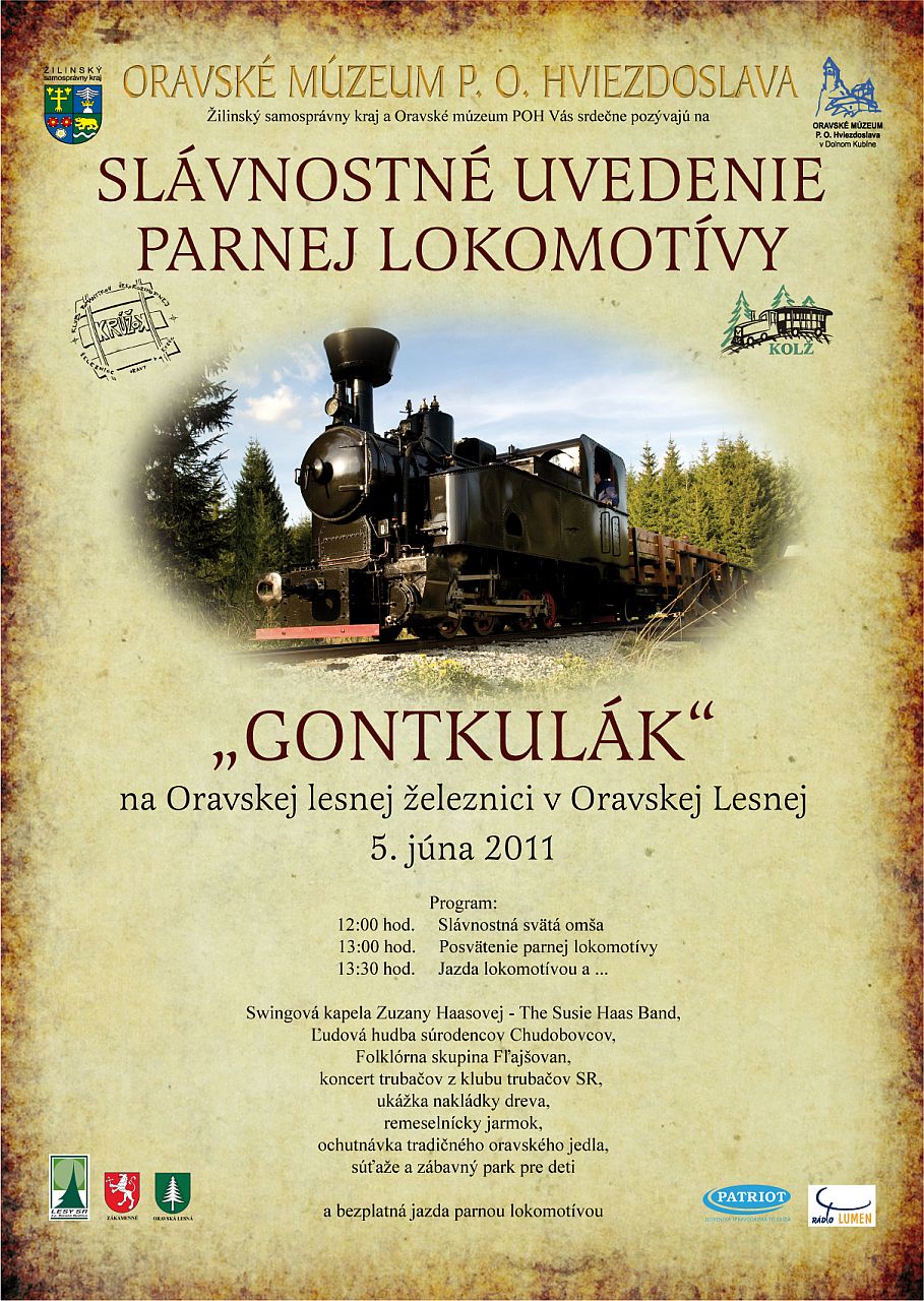 Parní lokomotiva byla vyrobena vyrobena v ČKD Praha v roce 1928 pod továtním označením D760/90. Ještě téhož roku byla dodána na lesní dráhu Žarnovica a hned v následujícím roce 1929 byla dána do provozu. Dalším jejím působištěm od roku 1951 byla Kysucko-Oravská lesná železnica (KOLŽ). Tady také lokomotiva získala název "Gontkulák" podle lokality Gontkula na oravské části zeleznice. V roce 1972 byl provoz na trati KOLŽ ukončen a tato lokomotiva byla poslední, které se po této trati projela a podílela se na její likvidaci. Od toho roku byla lokomotiva nepojízdná a až do roku 1990 stála jako pomník v lokomotivním depu Žilina, odkud ji potom získalo Kysucké múzeum a lokomotiva byla převezena do depa na Vychylovce. Dalším mezníkem byl rok 2009, kdy byla lokomotiva převezena do firmy OLPAS Moravia v Krnově, kde až do letošního roku probíhala její generální oprava. Do Třemešné byla lokomotiva převážena právě za účelem zkoušek jízdních vlastností. Po opravě se lokomotiva vrátí zpět na Oravskou lesní železnici, kde by měla být v provozu v úseku Tanečník - Sedlo Beskyd. V sobotu ráno již stála parní lokomotiva "Gontkulák" zatopená nad popelovou jámou před remízou v Třemešné. Odjezd na zkušební jízdu po trati do Liptaně byl plánován až na 11:40, takže byl dostatek času na pečlivou kontrolu a promazání parní lokomotivy. Kolem 9. hodiny parní lokmotiva posunovala pro služební vůz a byl tak sestaven vlak ve složení parní lokomotiva "Gontkulák" - služební vůz - dieselová lokomotiva "Faur" TU38.001. Zbývající dopolední čas jsem využil k dokumentování běžného provozu ve stanici Třemešná ve Slezsku a na úzkorozchodce ve stanicích Slezské Rudoltice a Liptaň. Jízdní řád trati 298 je koncipován tak, že na denní vozbu vlaků postačí jedna lokomotiva. Od loňského července je převážně v provozu zmodernizovaná lokomotiva 705 913-2 (modernizace proběhla v dílnách JHMD v Kamenici nad Lipou). V sobotu však na pravidelných vlacích jezdila 705 914-0. Přiblížil se dlouho očekávaný čas. Nejdříve z Třemešné ve Slezsku odjel v 11:25 pravidelný Os20607, na který jsem počkal ve stoupání za Třemešnou u přejezdu se silnicí I/57. Poté jsem přešel ještě výše na kopec. Výhled je dobrý a na protějším svahu se konečně objevuje souprava vlaku v čele s parní lokomotivou "Gontkulák". Nejtěžší úsek však teprve přijde. Stoupání od mostu v Třemešné k přejezdu dosahuje téměř 30‰ a dále od přejezdu až na vrchol dosahuje slušných 25‰. V dalším úseku směrem k Liptani čeká ještě nejmenší oblouk na trati s poloměrem 75m. Po průjezdu vlaku se přemisťuji do stanice Liptaň. Vlak sledují dvě hasičská auta, která také zastavují před stanicí. Jsem překvapen, že vlak ještě není ve stanici. Je nutné si uvědomit, že parní lokomotiva "Gontkulák" je konstruována primárně pro práci na lesních železnicích, proto má malá kola a velké válce, aby měla velkou sílu na dopravu nákladů, dřeva malou rychlostí. Ve stanici Liptaň je především pojezd parní lokomotivy pečlivě zkontrolován a promazán. Také je nutné posunováním přehodit lokomotivy na svých pozicích. Naskytla se jedinečná příležitost pořídit záběr parní lokomotivy "Gontkulák" na nejzašším místě na trati až za krajní výhybkou směrem k Osoblaze. Pro zpáteční jízdu z Liptaně do Třemešné jsem si vybral zajímavé místo na svahu naproti kostelu v Třemešné. Díky odpolednímu slunci v zádech mám před sebou nasvícené celé údolí a na protějším svahu je dobře viditelná trať, kudy bude zvláštní vlak sjíždět k Třemešné. Teprve tady je viditelná vlastnost úsporné stavby úzkorozchodných tratí, které maximálně kopírují terén za cenu oblouků malých poloměrů a větších stoupání. V dáli se objevuje zvláštní vlak a pomalu sjíždí do údolí až k mostu, odkud bude opět stoupat několika oblouky ke stanici Třemešná ve Slezsku. S výrazným supěním a podle zvuku pravidelným chodem zdolává parní lokomotiva "Gontkulák" posledním stovky metrů na své zkušební jízdě. Ve stanici Třemešná ve Slezsku je opět parní lokomotiva prohlédnuta a odpopelována. Nakonec je využita i poslední pára a lokomotiva vlastní silou vyjíždí na kopeček u rampy a najíždí na plošinový vůz. Jakmile se po odjezdu rychlíku R1184 uvolnila trať směrem na Krnov, lokomotiva 720 039-7 objela transportní soupravu a v 15:32 odjíždí zvláštní nákladní vlak s nákladem parní lokomotivy "Gontkulák" do Krnova. Na závěr už zbývá jen poděkovat všem, kteří se na znovuzprovoznění této parní lokomotivy podíleli a připravili nám na tento den jedinečnou a neopakovatelnou podívanou. Další informační zdroje: