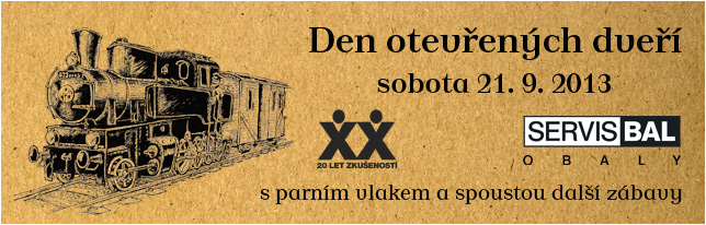 V průběhu měsíce září jsou pořádány v jednotlivých krajích oslavy Dne železnice. Letos není připraven velkolepý Národní den železnice, na který jsme byli zvyklí z uplynulých tří let (od roku 2010 postupně konaný v Olomouci, Děčíně a Brně). Ovšem vypravení takového počtu parních vlaků na lokálku do Dobrušky má i jiný důvod. Společnost Servisbal Obaly z Dobrušky slaví letos 20 let existence na trhu. Typicky rodinná firma se rozrostla do společnosti s 80 zaměstnanci a ročním obratem 230 mil. Kč za rok 2012. Většina obalů je vyráběna z vlnité lepenky. Zpočátku byla výroba orientována na zakázkovou výrobu krabic. Postupem doby s nákupem nových technologií byla výroba rozšířena o další technologie, které umožní řešit vnitřní vybavení krabic. V letošním roce do portfolia přibyla další dvě řešení - skládací papírová cívka a obal na světlomet. Úspěch slaví společnost také na světových trzích, o čemž svědčí i pětkrát udělený titul „Worldstar for Packaging”.