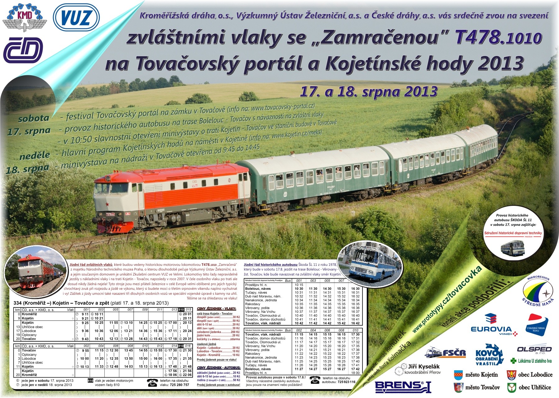 Zvláštní vlaky na trati Kojetín - Tovačov 17. a 18.8.2013Tovačovský portál a Kojetínské hody 2013