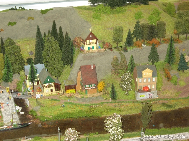 Velké modelové kolejiště ztvárňující okolí Labe s tratí Bad Schandau - Pirna