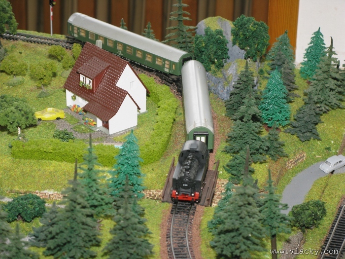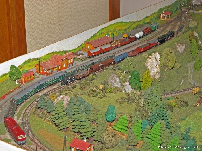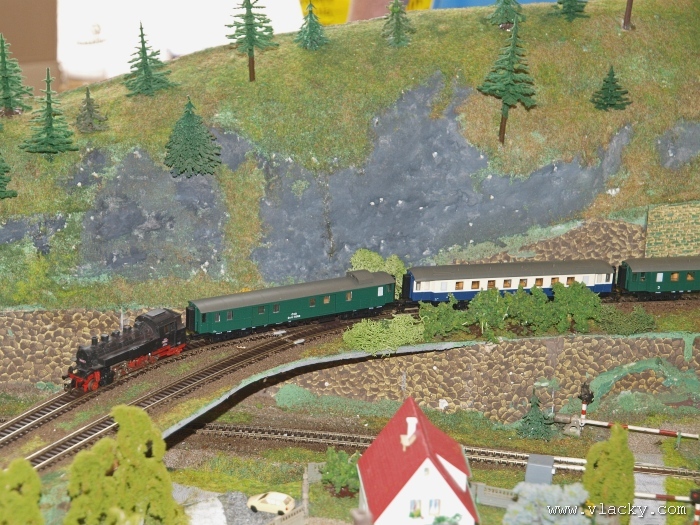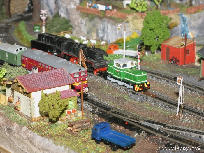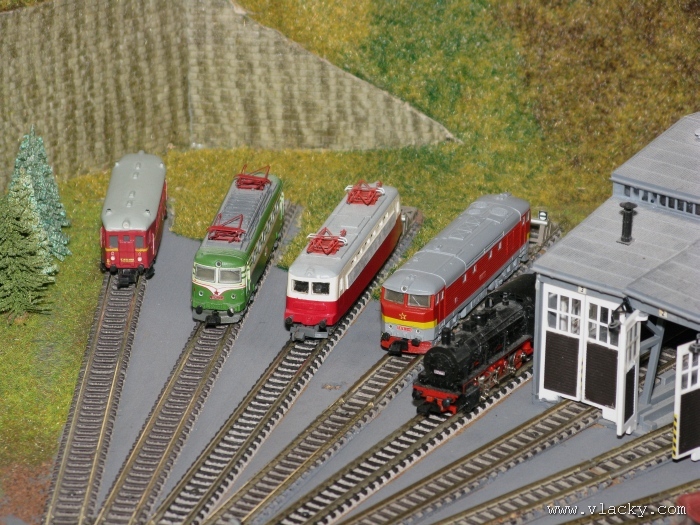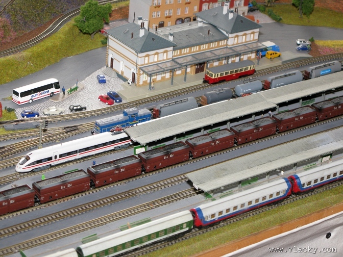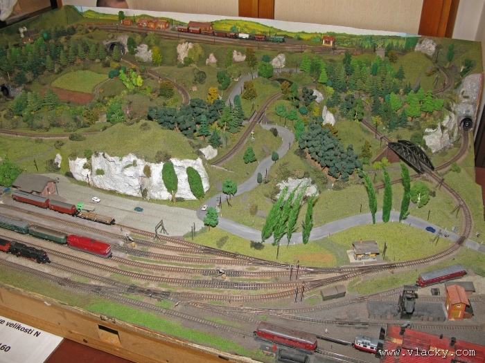 Hned po levé straně při vstupu do místnosti bylo velké kolejiště v modelové velikosti N. Zajímavé je i malé kompaktní kolejiště v modelové velikosti TT, které není o nic větší než stůl a plně tak naplňuje označení této velikosti TT = Table Top. Přitom na tak malé ploše byly ztvárněny zajímavé náměty. Podobné velikosti je jiné firemní kolejiště Roco velikosti H0, které není tak členité, ale ztvárňuje zajímavou předlohu zimní krajiny. Na první pohled se může zdát, že modelování zasněžené bílé zimní krajiny je daleko jednodušší, naopak je nutné věnovat větší pozornost patinování a detailům, které charakterizují toto roční období, např. navátý sníh, námraza nebo rampouchy.