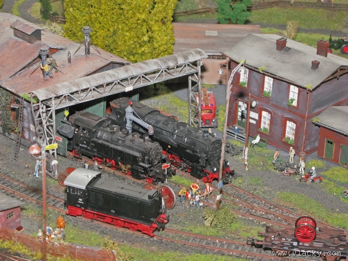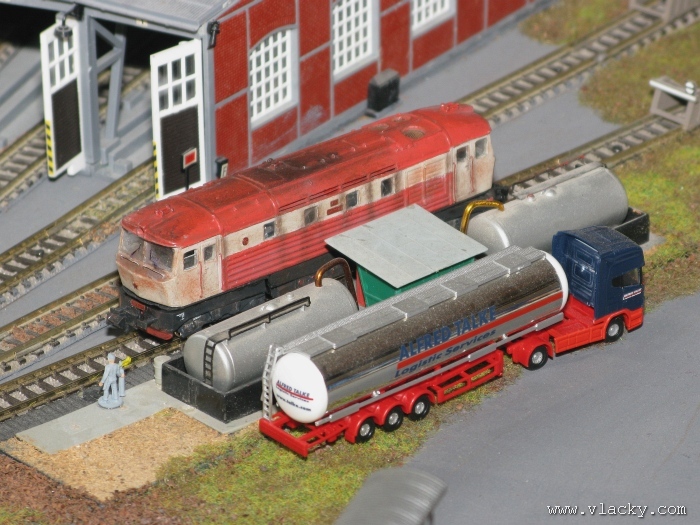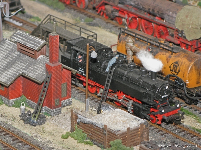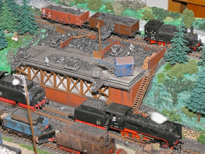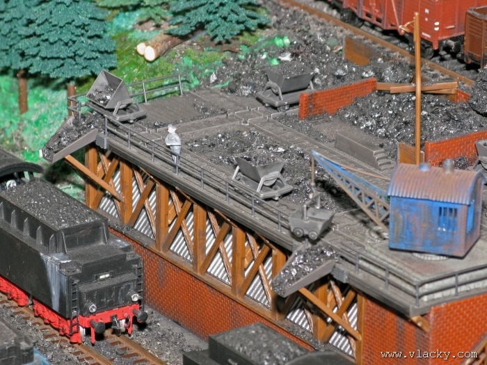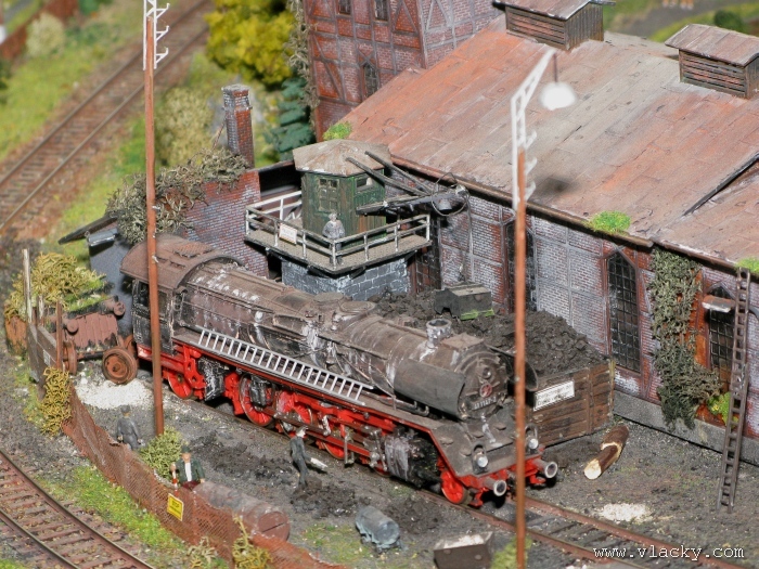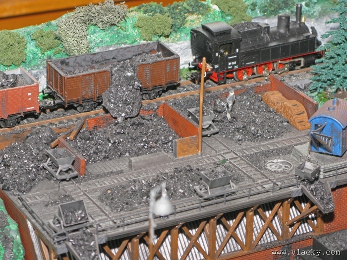 Při každé výstavě se rád zastavím u zajímavé diorámy lokomotivního depa. Tento námět je z modelářského pohledu velmi pěkně zpracován. Protože se však nejedná o klasické kolejiště a neprohání se po něm soupravy vlaků, zůstává tak trochu stranou pozornosti dětských návštěvníků. Tentokrát jsem se soustředil na část depa, kde se provádí zauhlování parních lokomotiv.