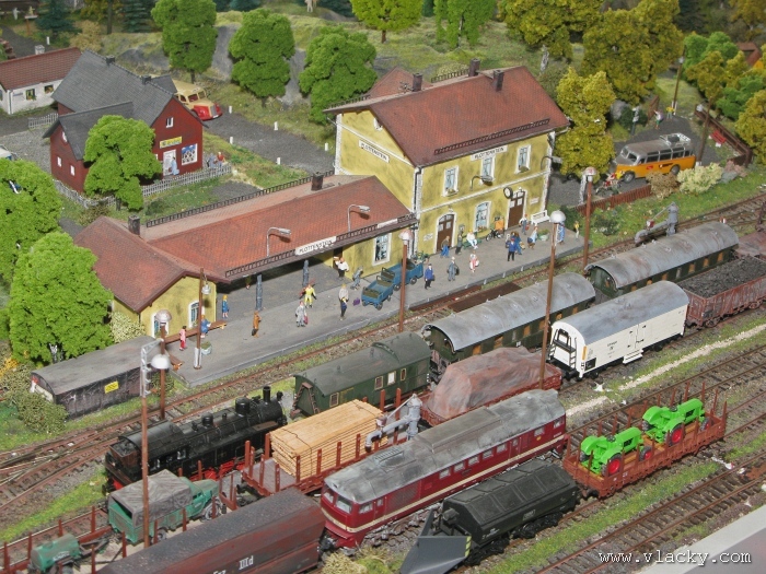 I letošní výstava trvala celkem 4 dny od čtvrtka 24.4 do neděle 27.4. Zúčastnil jsem se opět v sobotu a ve vyhrazeném čase jsem se snažil zachytit maximum foto a video materiálu. Celou místnost pro sebe zabrala prezentace velké zahradní železnice. Modely samotné si tak nepotrpí na věrnost zpracování detailů, jsou však dostatečně robustní pro náročný provoz. Díky své velikosti není problémem, aby lokomotivy byly vybaveny např. zvukovými generátory. Klasická kolejiště všech modelových velikostí byla potom soustředěna v dalších propojených místnostech. Snažil jsem se fotogalerii sestavit tak, aby svým obsahem vhodně doplňovala reportáž z výstavy 2007. Proto bych si dovolil upozornit spíše na kolejiště, která jsem ještě neměl zdokumentována.