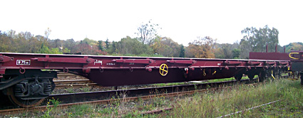 | • Rs | - | plošinový vůz podvozkový běžné stavby se sklopnými čelními stěnami a klanicemi |