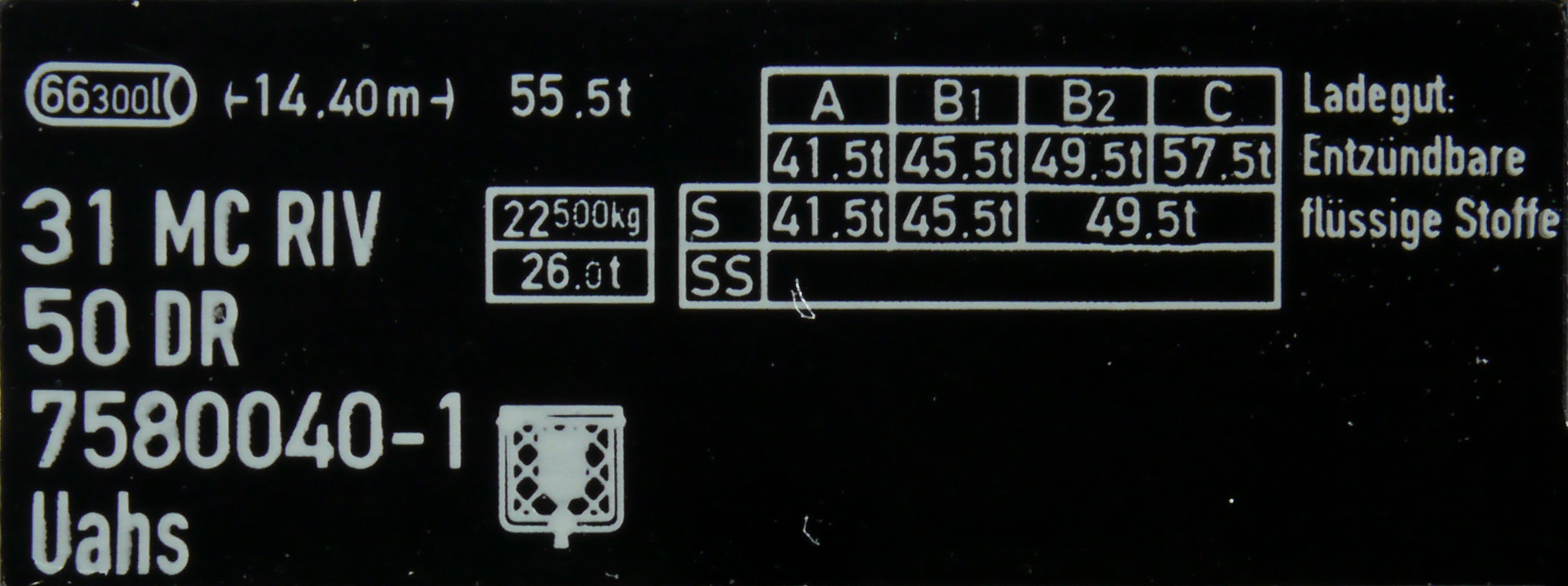 | • 31 50 7580040-1 | → | Z - kotlový (cisternový) vůz |