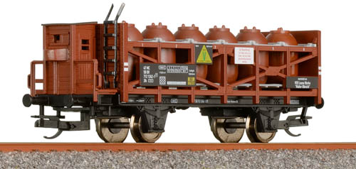 | nádobový vůz červenohnědý s brzdařskou budkou „Leuna“ |