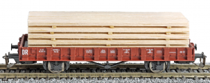 | níkostěnný nákladní vůz červenohnědý s klanicemi s nákladem prken |