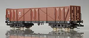 vysokostěnný nákladní vůz červenohnědý, černý rám a podvozky