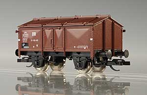 nákladní vůz červenohnědý s klapkami, černý pojezd