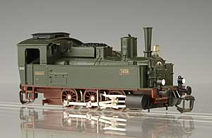 parní lokomotiva tmavě zelená s tamvě červeným pojezdem