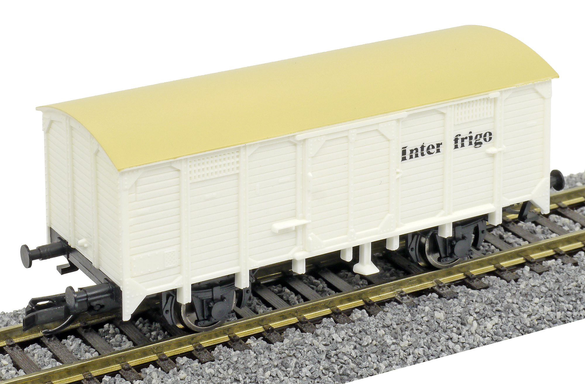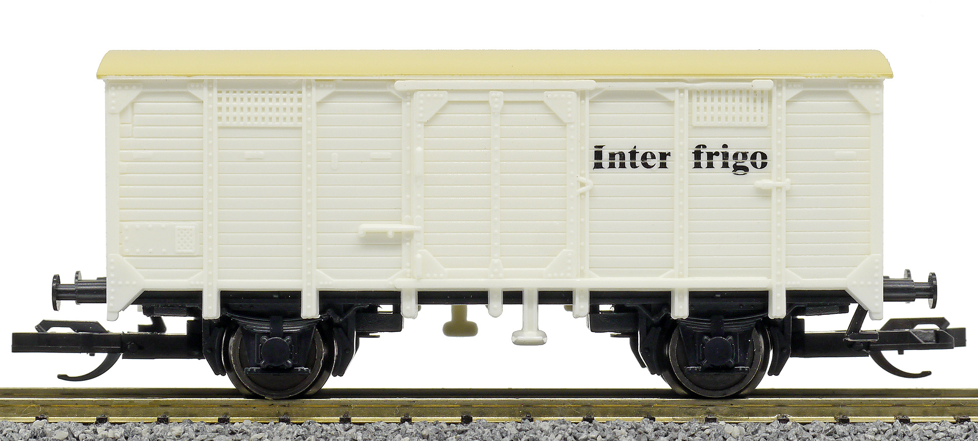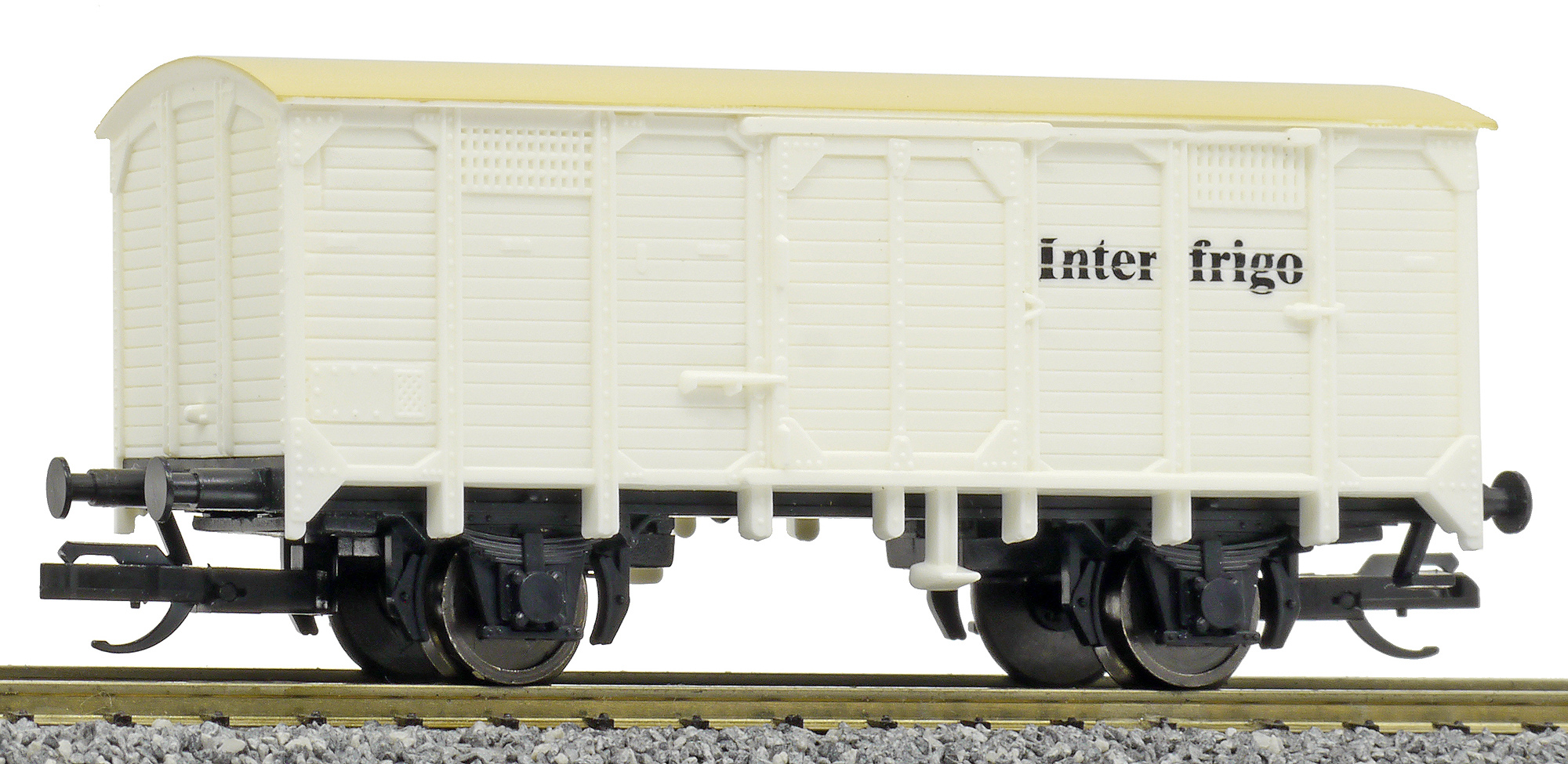 | krytý nákladní vůz bílý s krémovou střechou „Interfrigo“ |