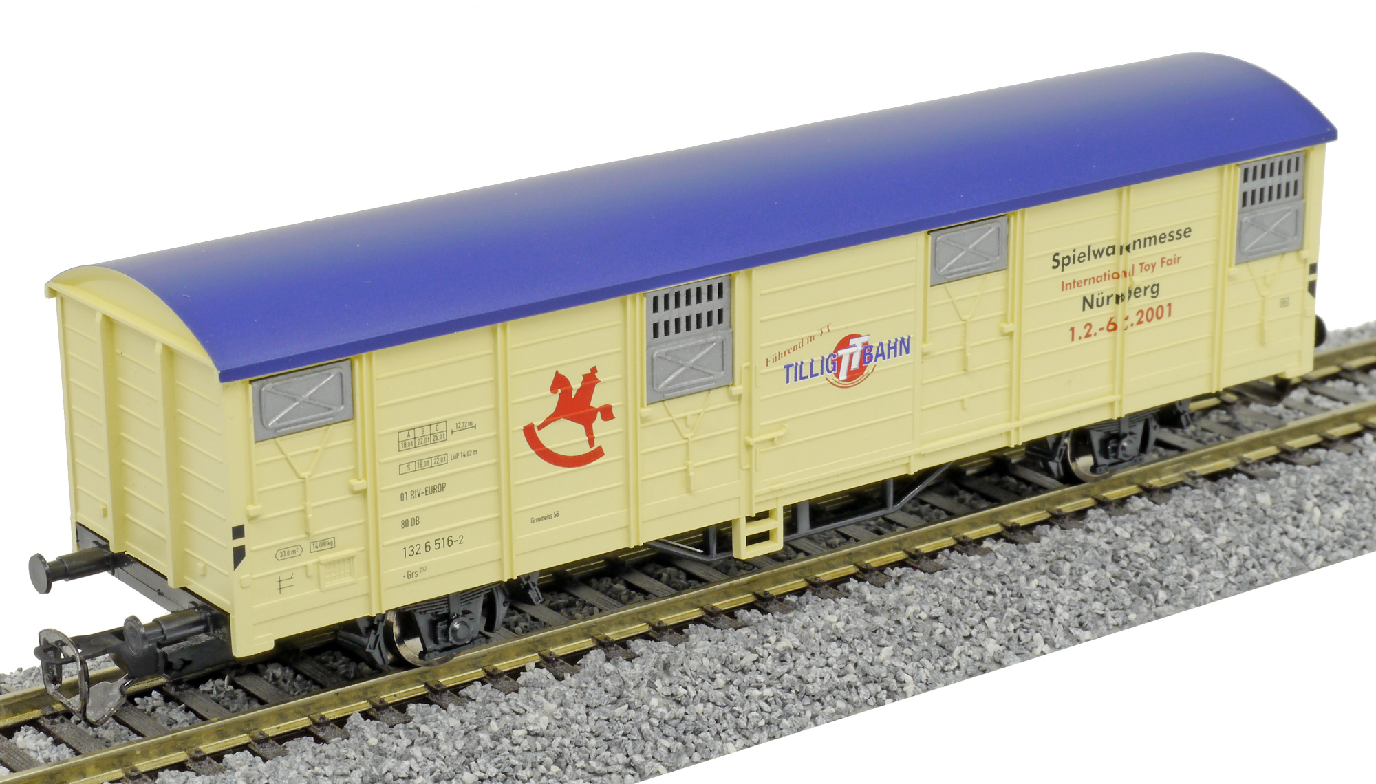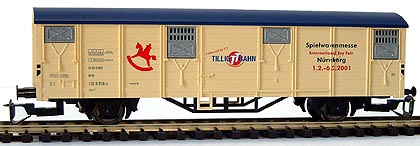 krytý nákladní vůz krémový šedou střechou „Spielwarenmesse Nürnberg 2001“