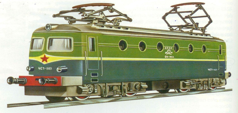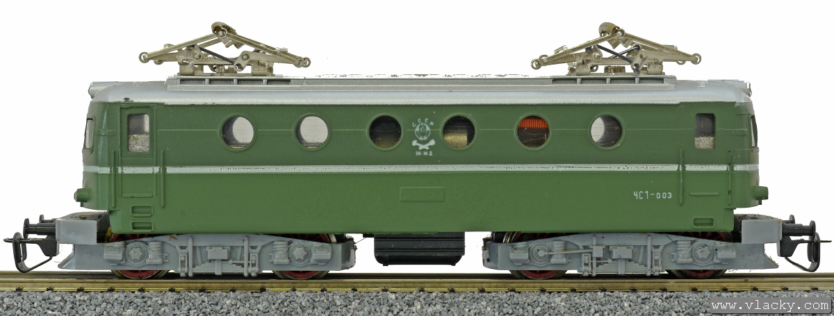 Popis   elektrická lokomotiva zelená-hráškově zelená s šedou střechou