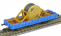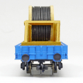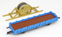 | nízkostěnný nákladní vůz modrý s nákladem bubnu kabelu „Elektrizace železnic“ |