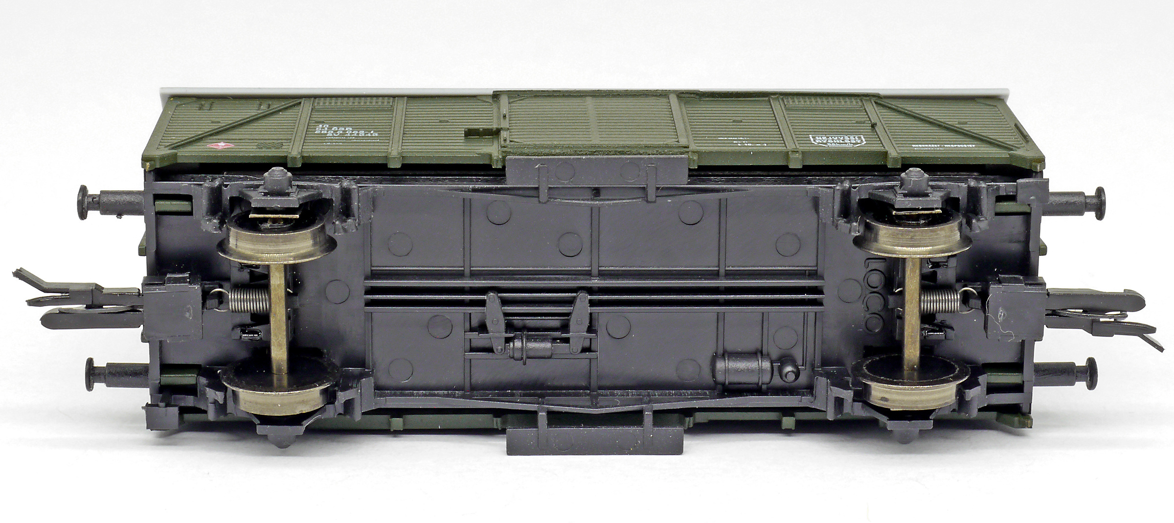 | krytý nákladní vůz zelený s šedou střechou do pracovního vlaku SV 44545 |
