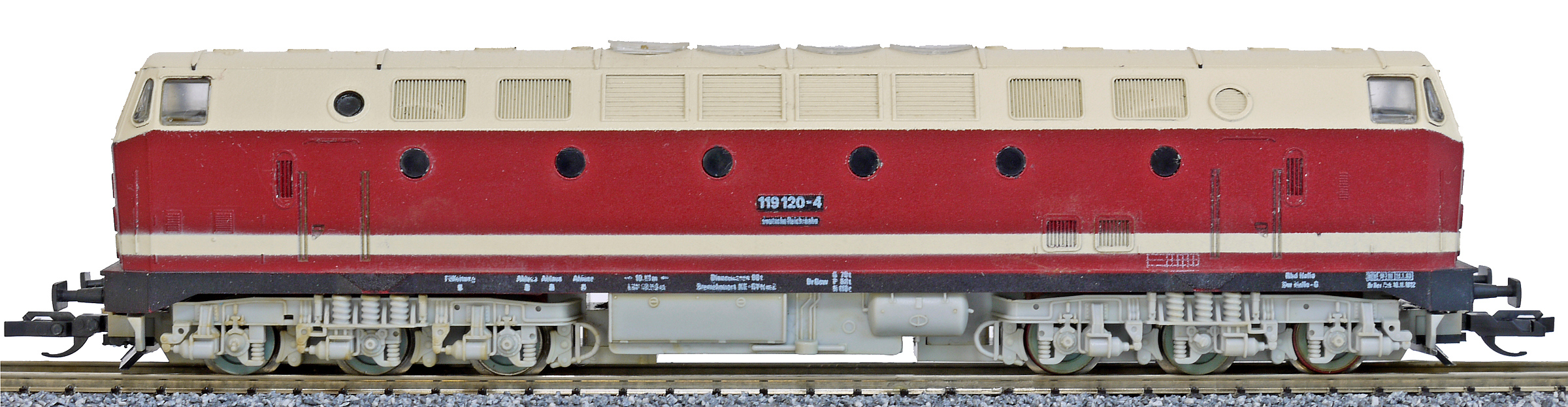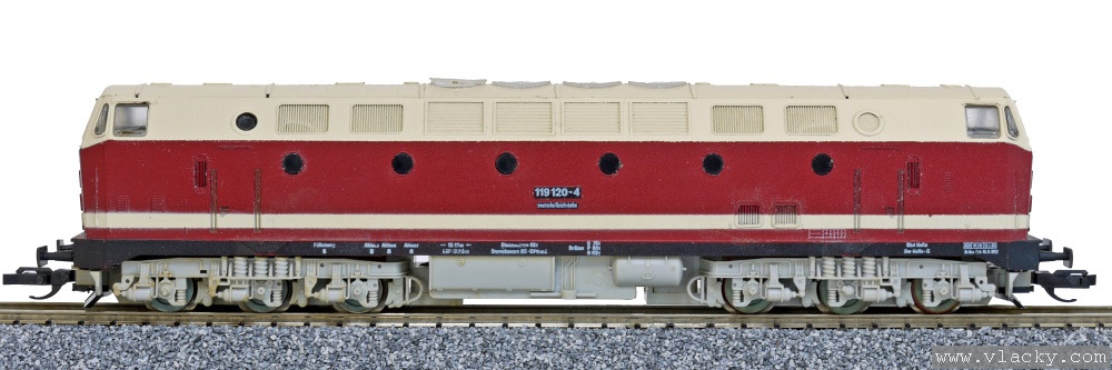 měřítko 1:120 - rozchod kolejí 12 mm osvětlení - 3 reflektory vpředu, 2 světla vzadu, přepínatelné podle směru jízdy 2 hnané nápravy 2 bandážované nápravy nenormované uchycení spřáhla 162 mm - celková délka modelu přes nárazníky 6 - celkový počet náprav nebo rozložení náprav