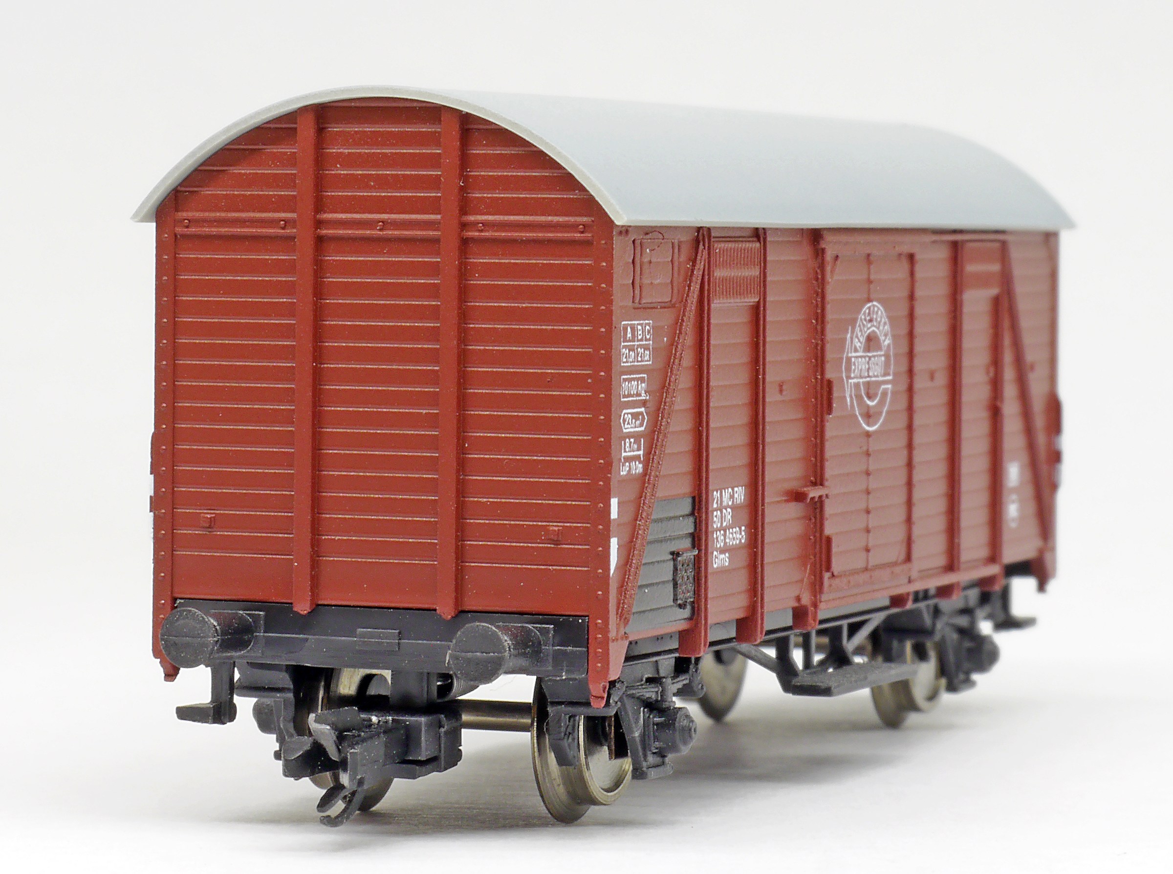 | krytý nákladní vůz hnědý s šedou hladkou střecheu „REISEGEPACK” |