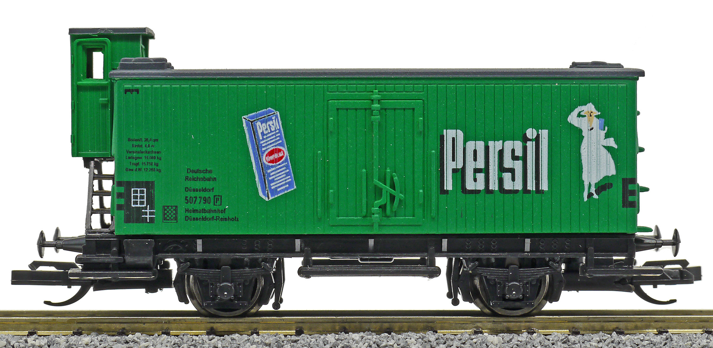 | nákladní vůz zelený s šedou střechou „Persil“ |