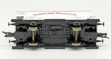 | nákladní chladící vůz bílý s šedou střechou a brzdařskou budkou „Gefrierfleisch“ |