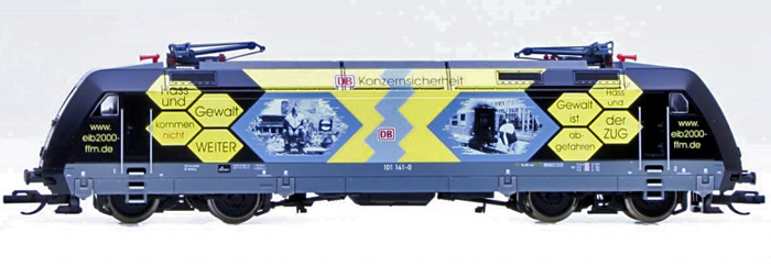 | elektrická lokomotiva s reklamním potiskem „Konzernsicherheit“ |