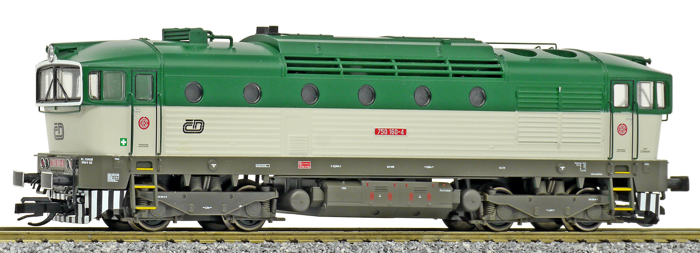 | dieselová lokomotiva zelená-světle šedá |