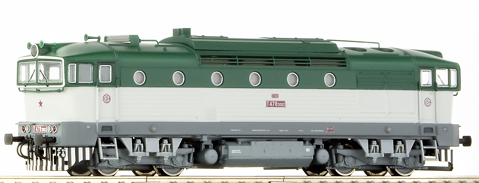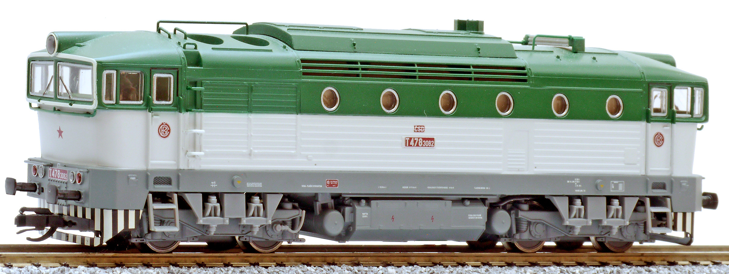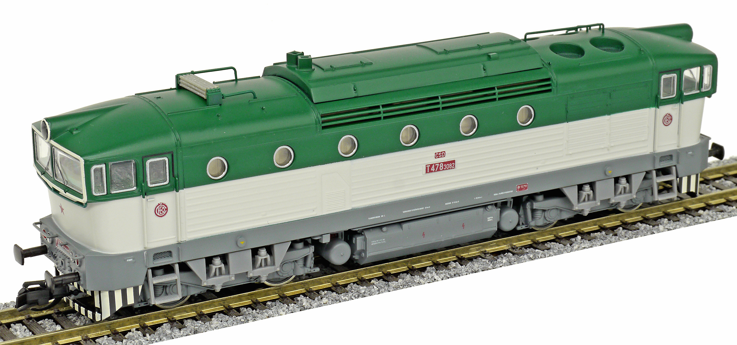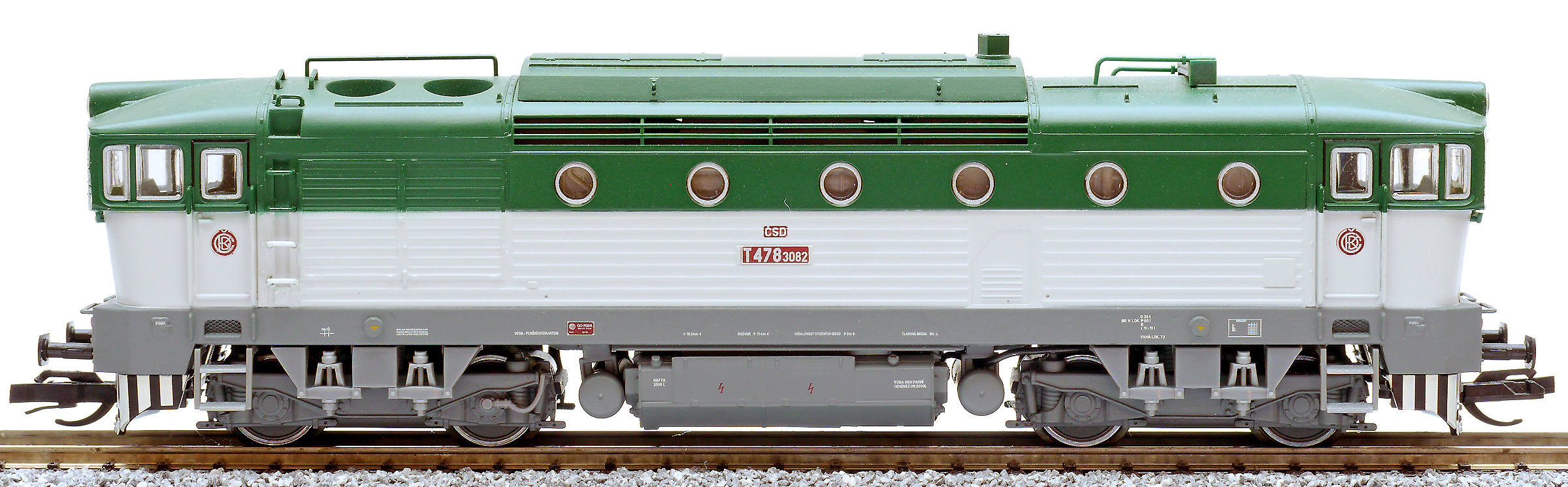 Popis   dieselová lokomotiva zelená-bílá s šedým pojezdem
