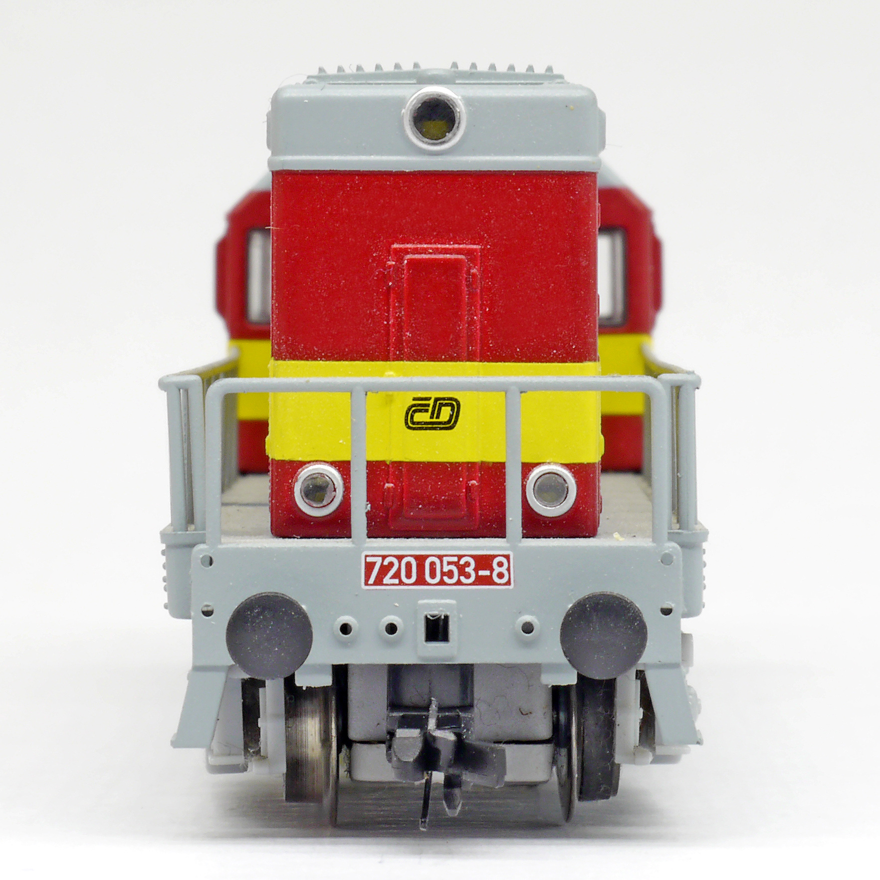 Popis   dieselová lokomotiva červená s výstražným žlutým pruhem