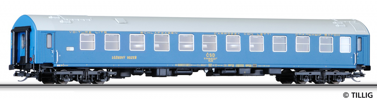 Popis   lůžkový vůz modrý s šedou střechou