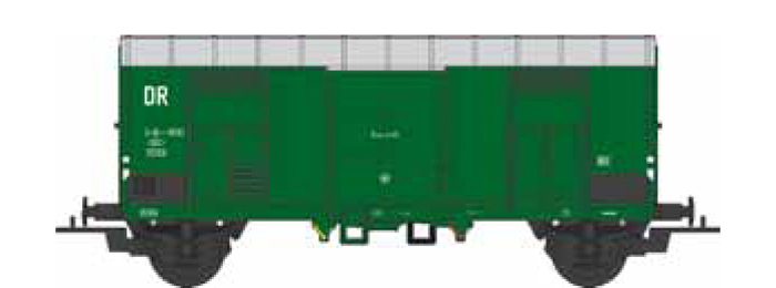 | krytý nákladní vůz zelený s šedou střechou do pracovního vlaku |