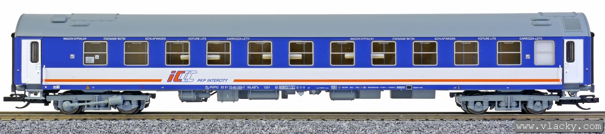 | lůžkový vůz modrý-bílý s šedou střechou „PKP INTERCITY“ |