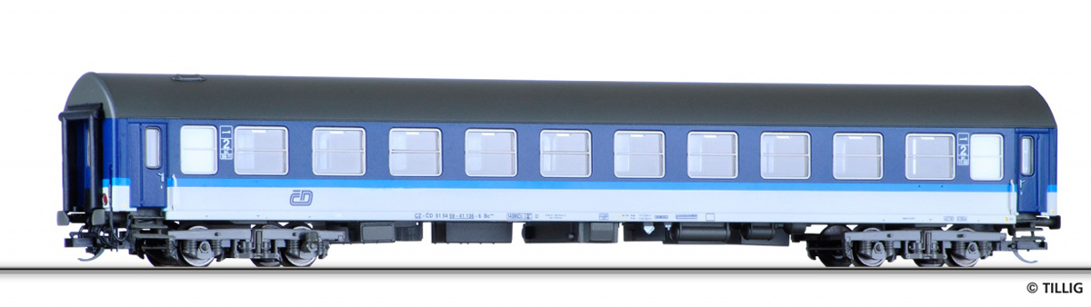 | rychlíkový vůz modrý-bílý v barevném chematu „Najbrt“ 2. tř. |