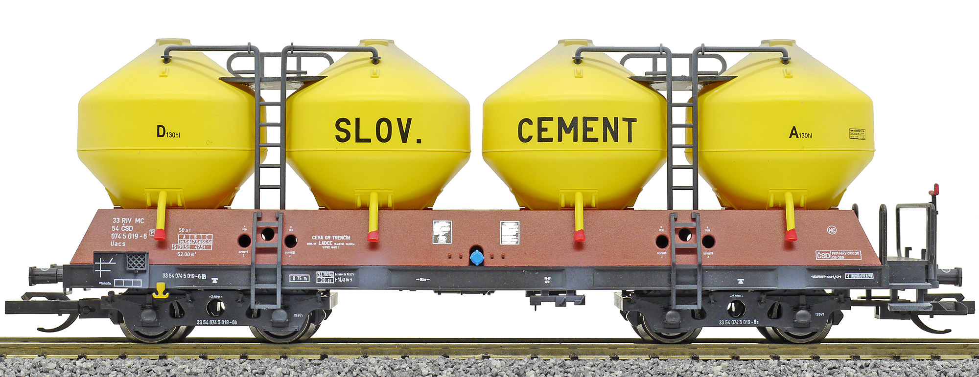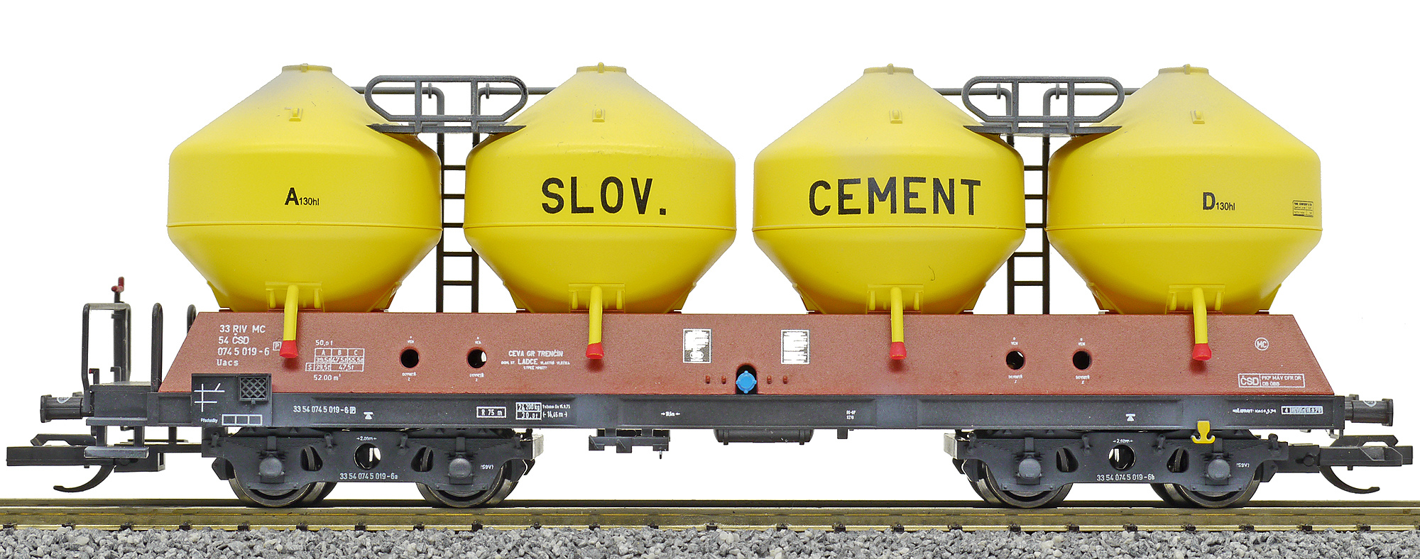 | • 33 54 074 5 019-6 | → | nákladní, s podvozky, pevný rozchod, soukromý vůz, RIV, PPV |