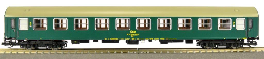 | rychlíkový vůz zelený s šedou střechou 2. tř. |