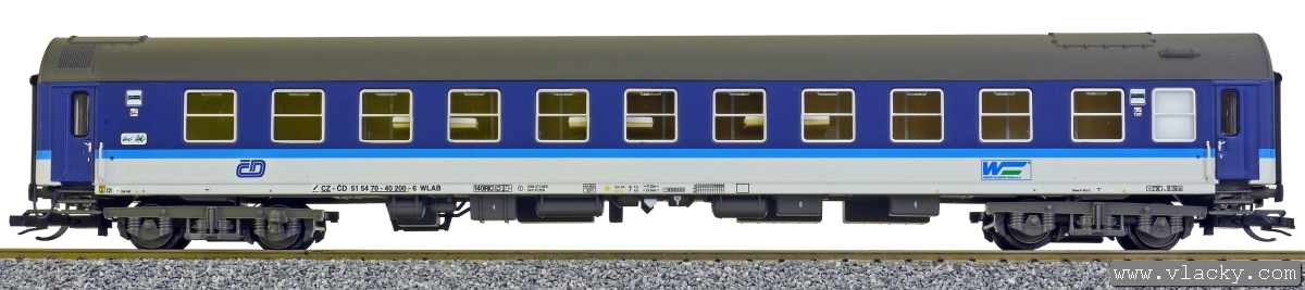 | lůžkový vůz modrý-bílý s šedou střechou 2. tř. |