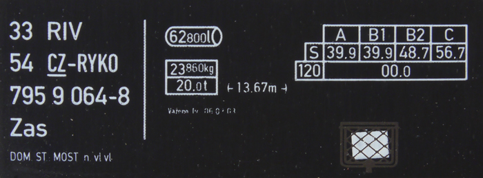 | • 33 54 795 9 064-8 | → | Z - kotlový (cisternový) vůz |