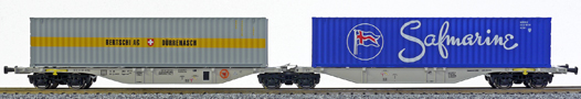 | dvoudílný kontejnerový vůz modrý s nákladem dvou kontejnerů 40' „Bertschi“ |