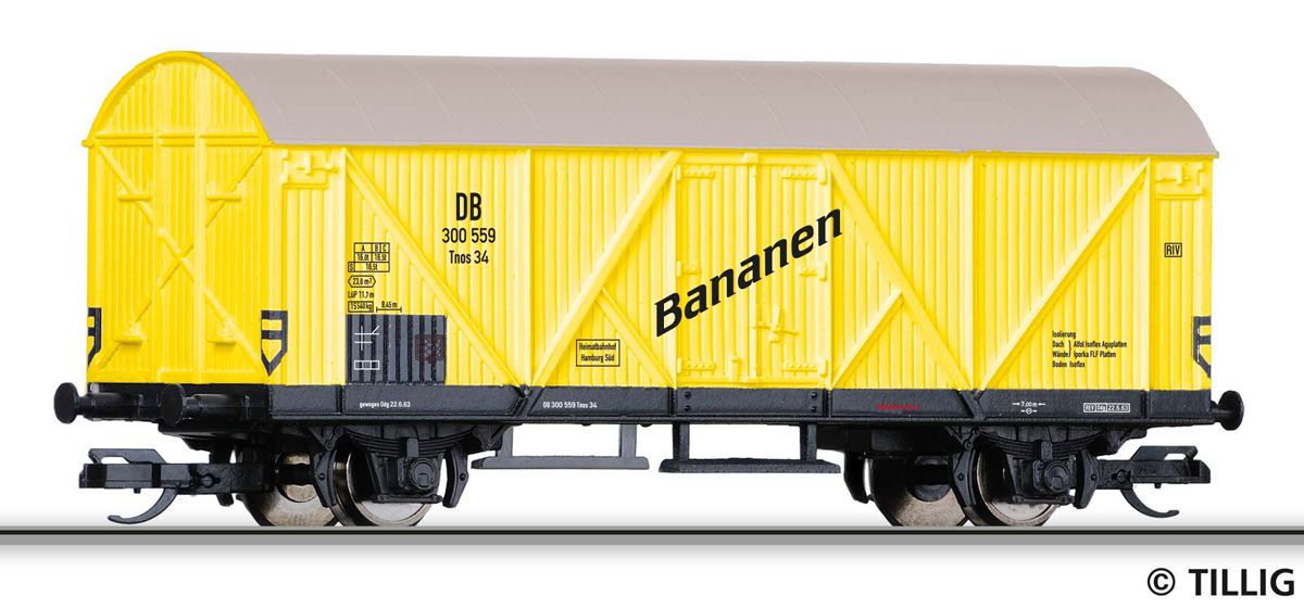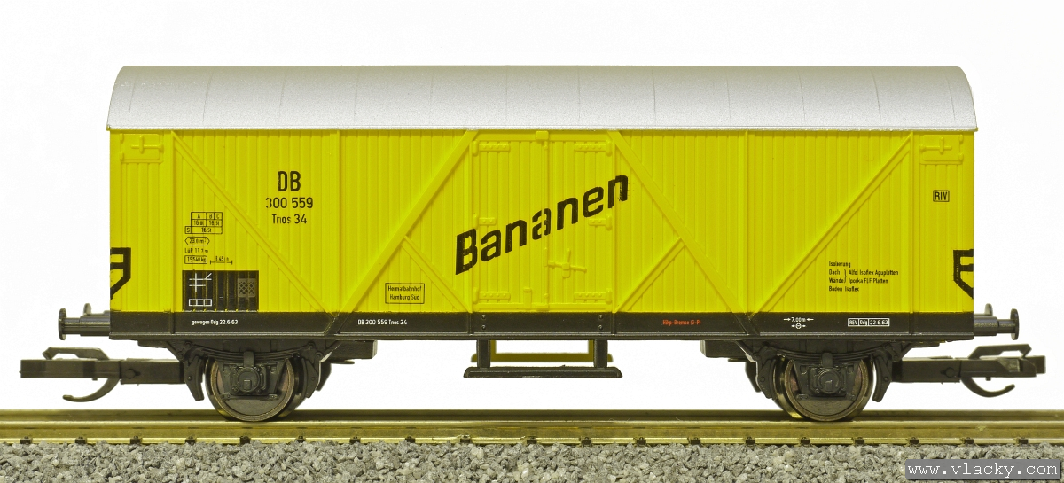 žlutý se světlešedou střechou „Bananen“