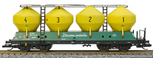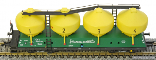 | nákladní samovýsypný vůz zelený se žlutými nádobami „Přeprava cementu“ |