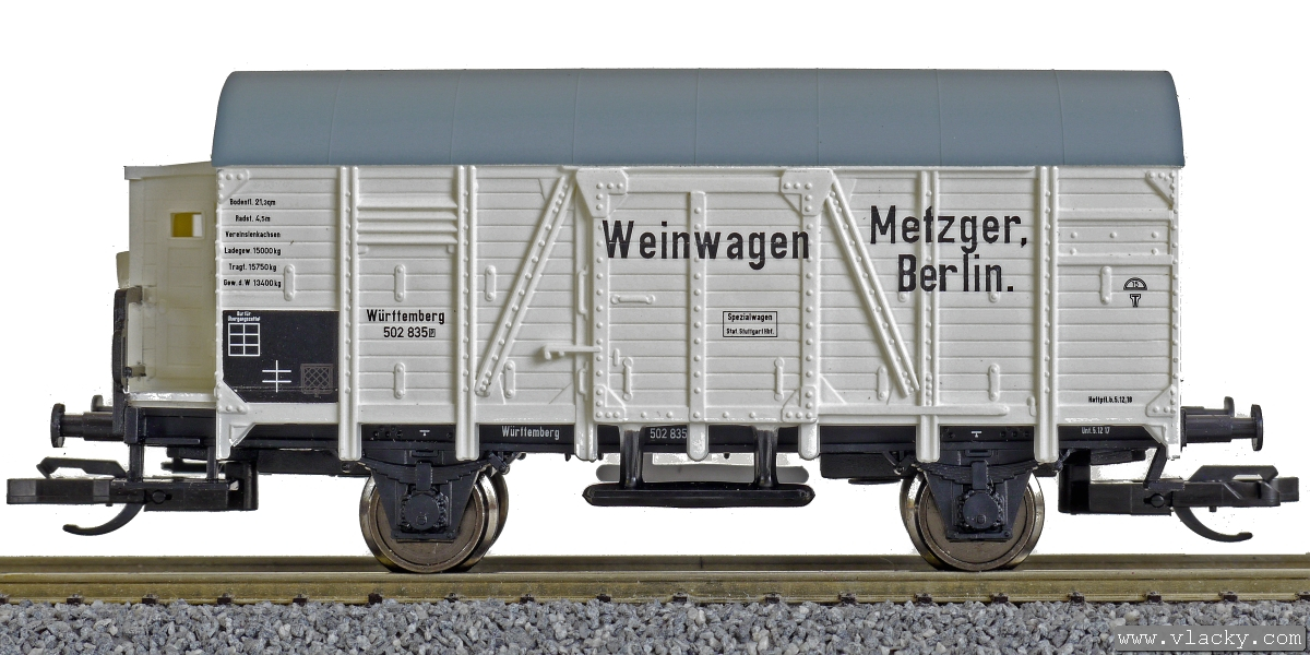 | bílý s šedou střechou a brzdařskou budkou „Metzger“ |