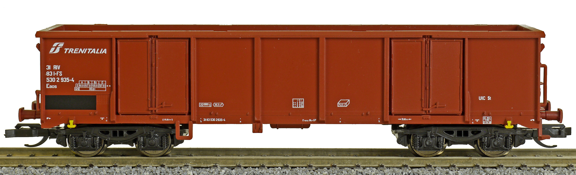 | • 31 83 530 2 935-4 | → | nákladní, s podvozky, pevný rozchod, ve vlastnictví železniční správy, RIV, PPV |