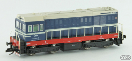 | dieselová lokomotiva tmavě modrá, červený rám |