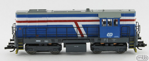Popis   dieselová lokomotiva modrá s černým pojedem, šedá střecha