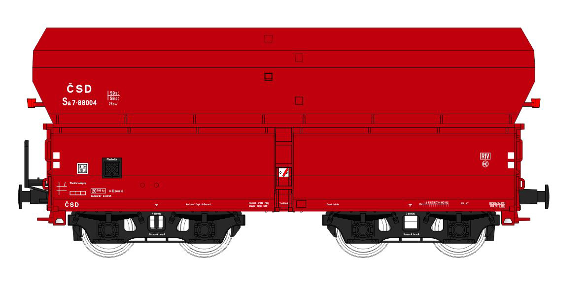 měřítko 1:120 - rozchod kolejí 12 mm kinematika krátkého spřáhla (KKK) podle normy NEM 358 83 mm - celková délka modelu přes nárazníky 4 - celkový počet náprav nebo rozložení náprav