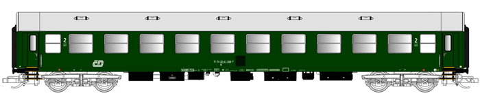 | rychlíkový vůz zelený s šedou střechou 2. tř. |