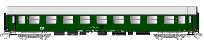| rychlíkový vůz zelený s šedou střechou 1./2. tř. |