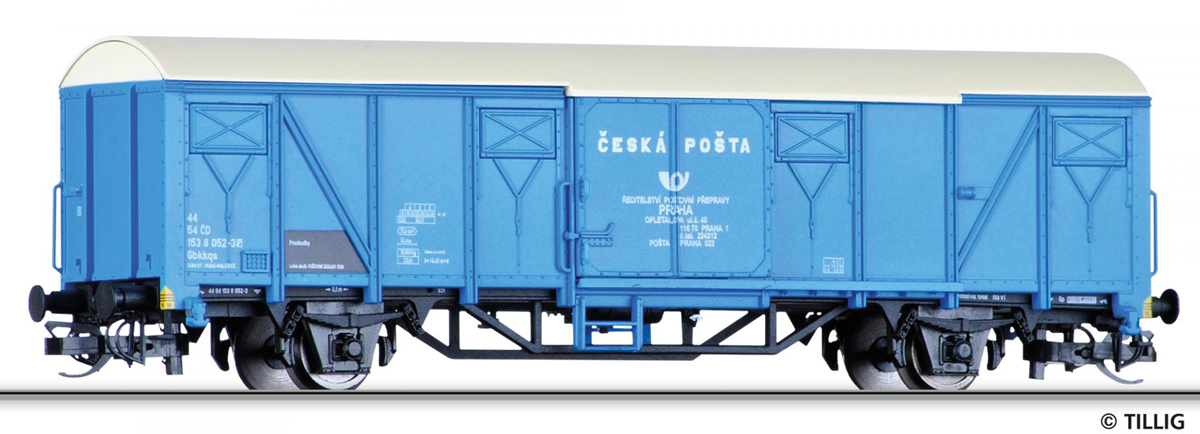 | krytý nákladní vůz krytý modrý s šedou střechouý „ČESKÁ POŠTA“ |