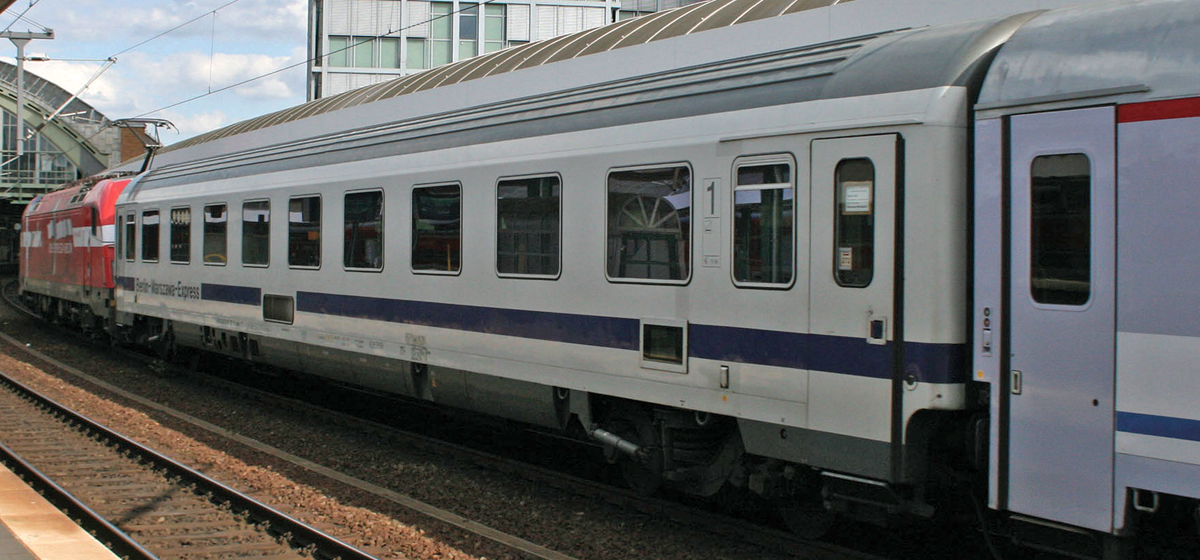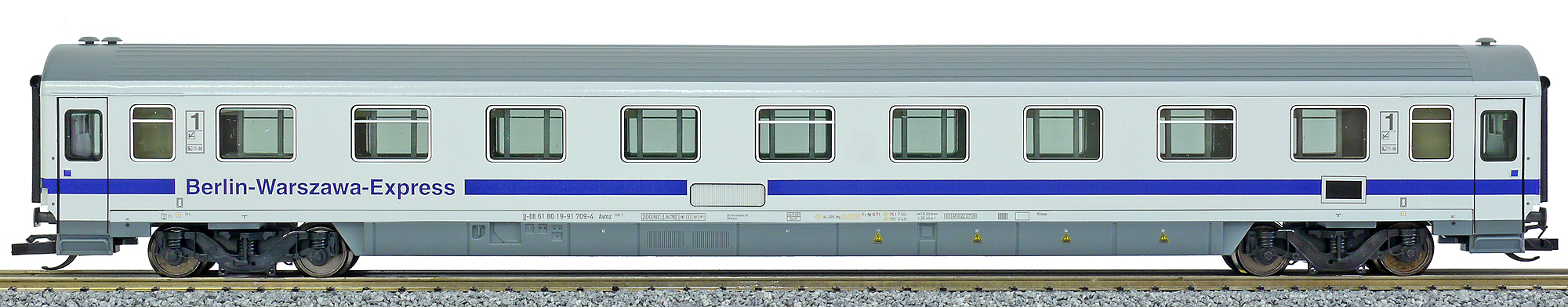 | rychlíkový vůz bílý s šedou střechou 1. tř. „Berlin-Warzawa-Express“ |