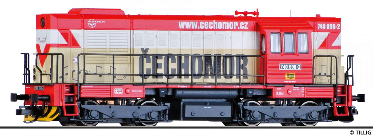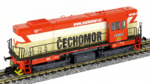 | dieselová lokomotiva s reklamou „ČECHOMOR“ |