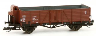 | otevřený nákladní vůz červenohnědý s brzdařskou budkou typ „Villach“ |