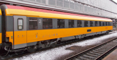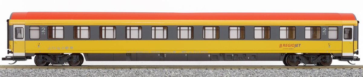rychlíkový vůz v barvách „RegioJet“ 2. tř.